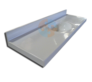 -Vanitorio simple; Se pueden fabricar con diferentes cantidades de fuentes; Posee refuerzos en la zona plana del vanitorio para evitar deformaciones